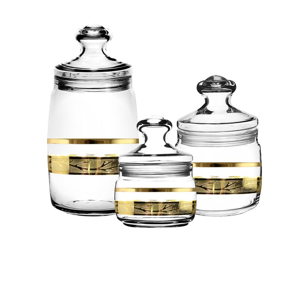 Банки Чешни 3 шт с узором "Золотая ветвь" (TAV326-424/425/554/S/J/3)
